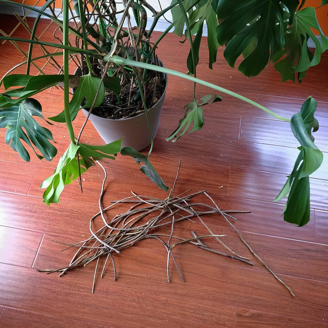 📷5️⃣ Trimmed off a few of the aerial roots that were starting to crawl along the floor. Trim or don’t trim – I haven’t noticed a difference in plant health.