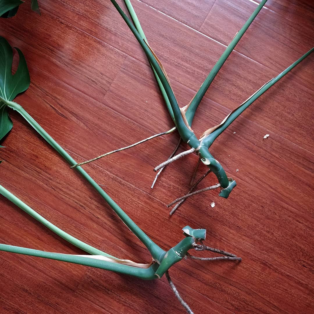 The time has come for me to take cuttings from my monstera. 📷2️⃣ I took the cuttings from the two tallest vines, leaving the vines with at least one leaf. On the cutting itself, I removed the lower two or three leaves mostly so that it would fit into a pot better.
