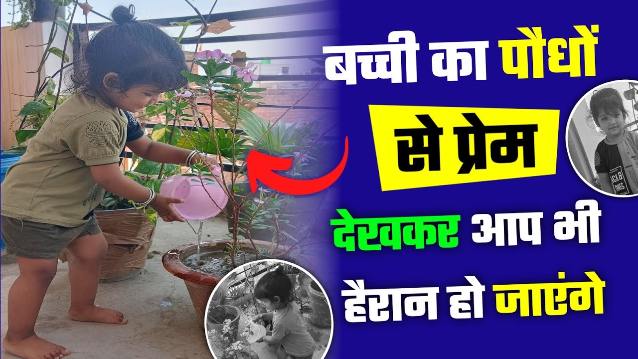 छोटी सी बच्ची को पेड़ पौधों से बहुत लगाव है।इसको जब भी मौका मिलता है तब गमलों में लगे पौधों को पानी देती है।