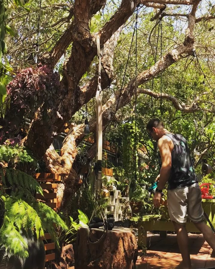 Hoisting the Hoyas up into the canopy of the guava tree for optimum dappled sunlight šæāļø and because one of the stems is over 8 ft long and likes to dangle! šµThe pulley systems makes them easier to lower for watering ā Also pulley systems are way too much fun š #hoyas #raisedpots #thehorticultgarden