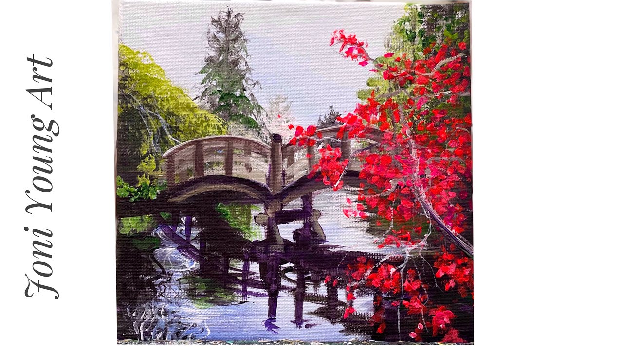 Hi everyone welcome back to my channel for another acrylic painting tutorial. Today I’m showing you how to paint a Japanese garden bridge and red maple tree with Reflections in the pond. A very peaceful landscape setting a reference photo for this painting is free to download on patreon as well. Hope you enjoy watching and learning how to paint this today using the following colours and brushes listed below.