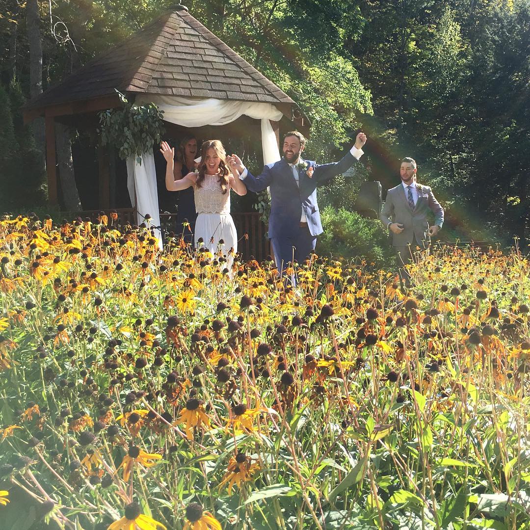 Cheers to our friends Chris and Kathy for getting married in a sea of rudbeckias 🌼🌼💑🌼🌼 #TBT to two weeks ago in Lake Luzerne, New York on the second day of fall 🍂#rudbeckia #blackeyedsusan #lakeluzerne #campmuskenny #thehorticult