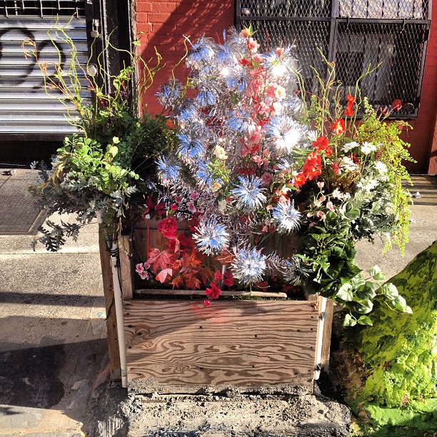 Odd artificial flower display on Chrystie Street sidewalk. #streetart #thesillNYCstreetartThe Sill Comments are closed.