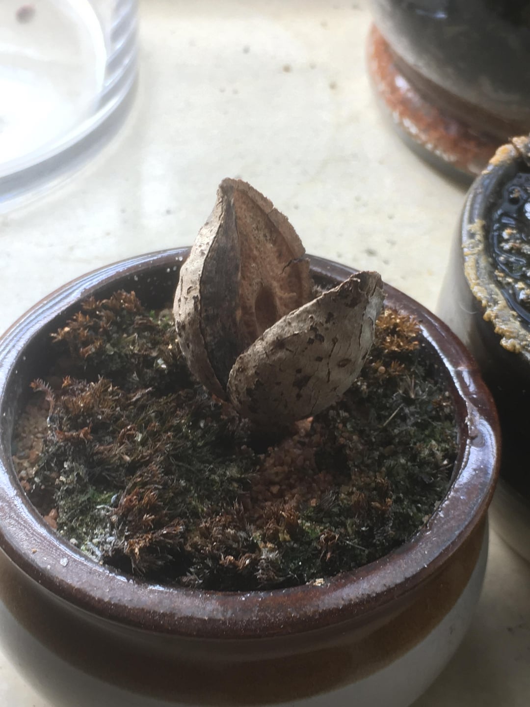 After a couple of days I saw it and thought ‘huh, I thought that pod was open’. I thought I must’ve been remembering wrong, but a few days later I’d run low on my distilled water and was late with watering. This little pot dries out very quickly, and lo, the pod had opened again as the media dried! I added water and it began closing again.