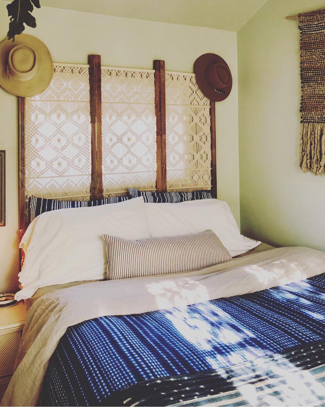 There are a few things we love about @sandandsuede’s bedroom. 1.) she found a great solution for a privacy / headboard situation using that pretty macrame screen, 2.) our Pilar duvet and pillow shams are looking awfully chic 3.) those hats! 🙌🏾🙌🏾🙌🏾