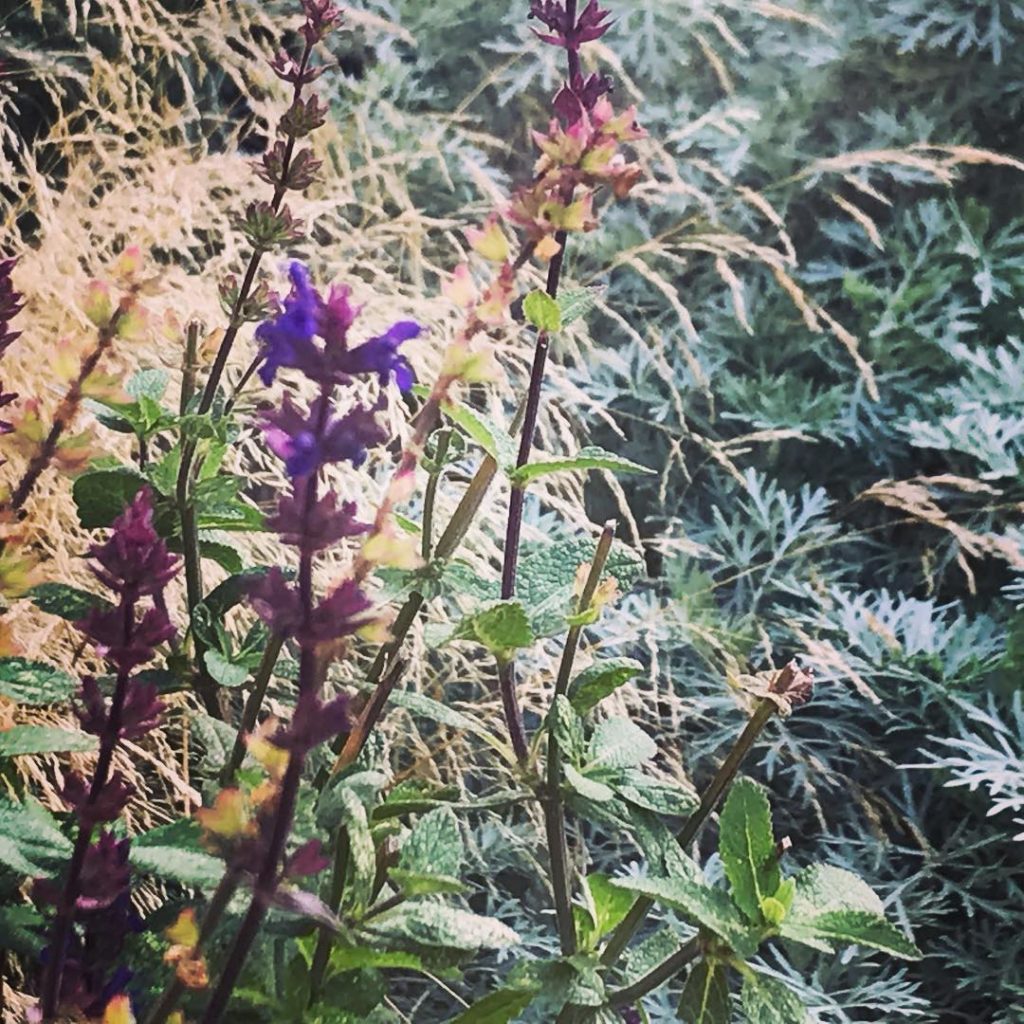 The ridiculously long flowering #salvia ‘Caradonna’ with #deschampsia cespitosa and #artemisia ‘Powis Castle’ – you wouldn’t think it was almost mid October #gardendesign #loveplants #autumn #plantsofinstagram