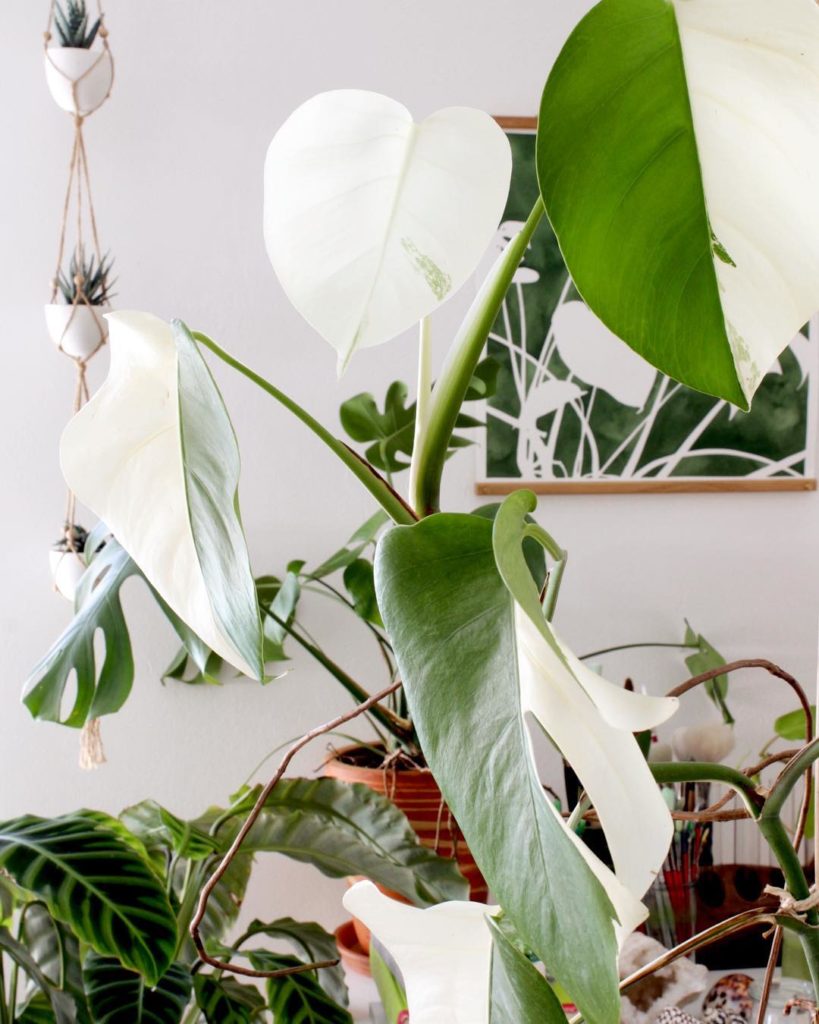 I’ve waited a while for this one! 🕊My favorite houseplant, monstera variegata, with its new white leaf!