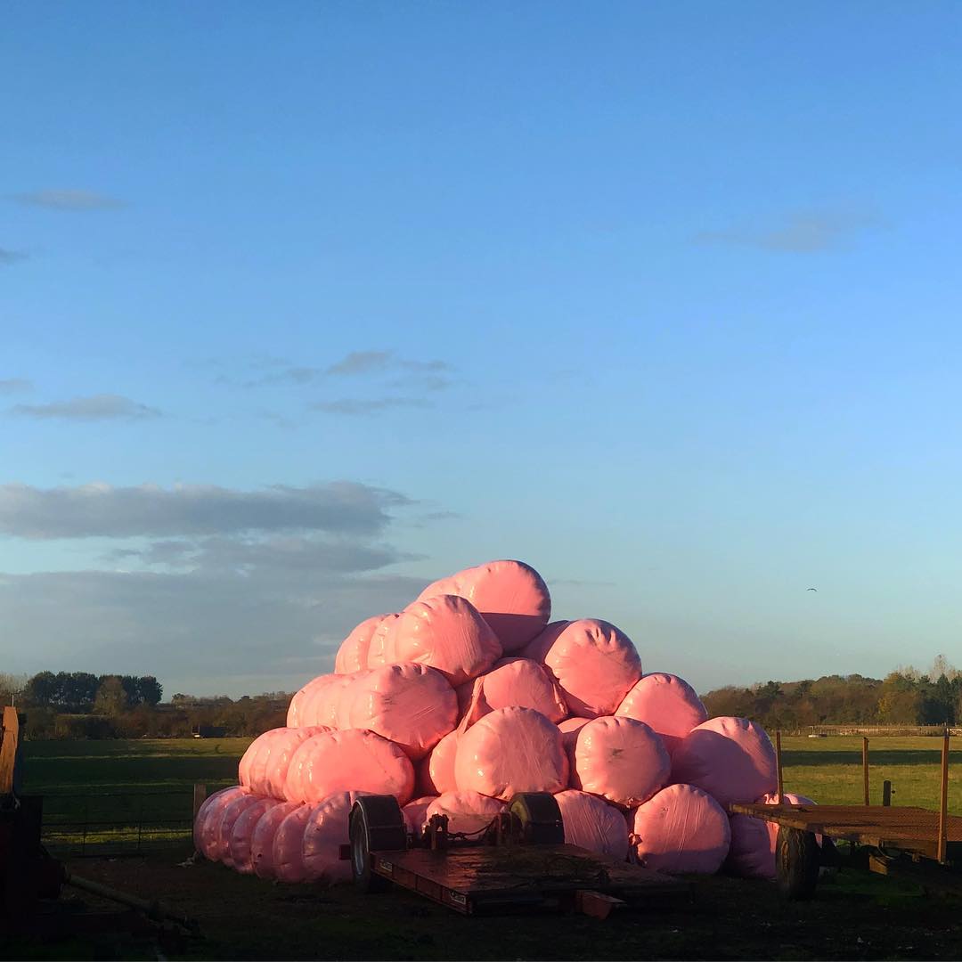 London got #christo and his #mastaba floating on the Serpentine…the depths of English countryside in Warwickshire got pink silage bags stacked up in a pyramid in a field….looks like art to me but it is to raise money for Breast Cancer Now campaign. Great initiative and looks fun too!
