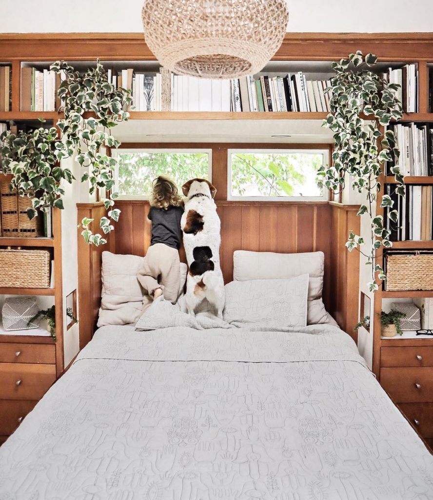Our boo @whitneyleighmorris serving up some neutral boho realness with our Natural Hamsa Quilt Set!😍 Looks like the little ones like it too 🤣👼🏼🐶🌿 #jungalow