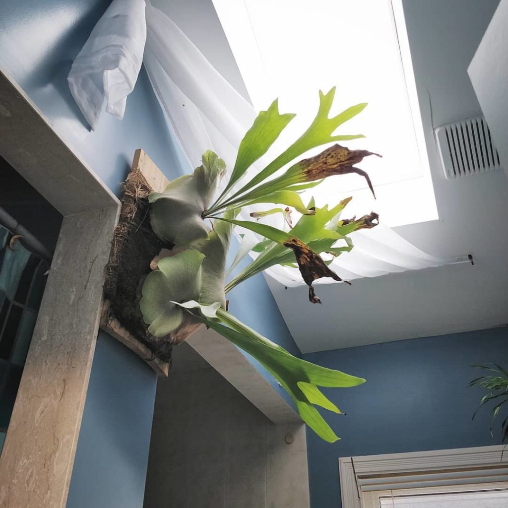 Appreciating how a plant grows: 1️⃣ my staghorn fern has lived on this wall under the skylight for almost 4 years. Every few weeks, it will shed a frond or two.