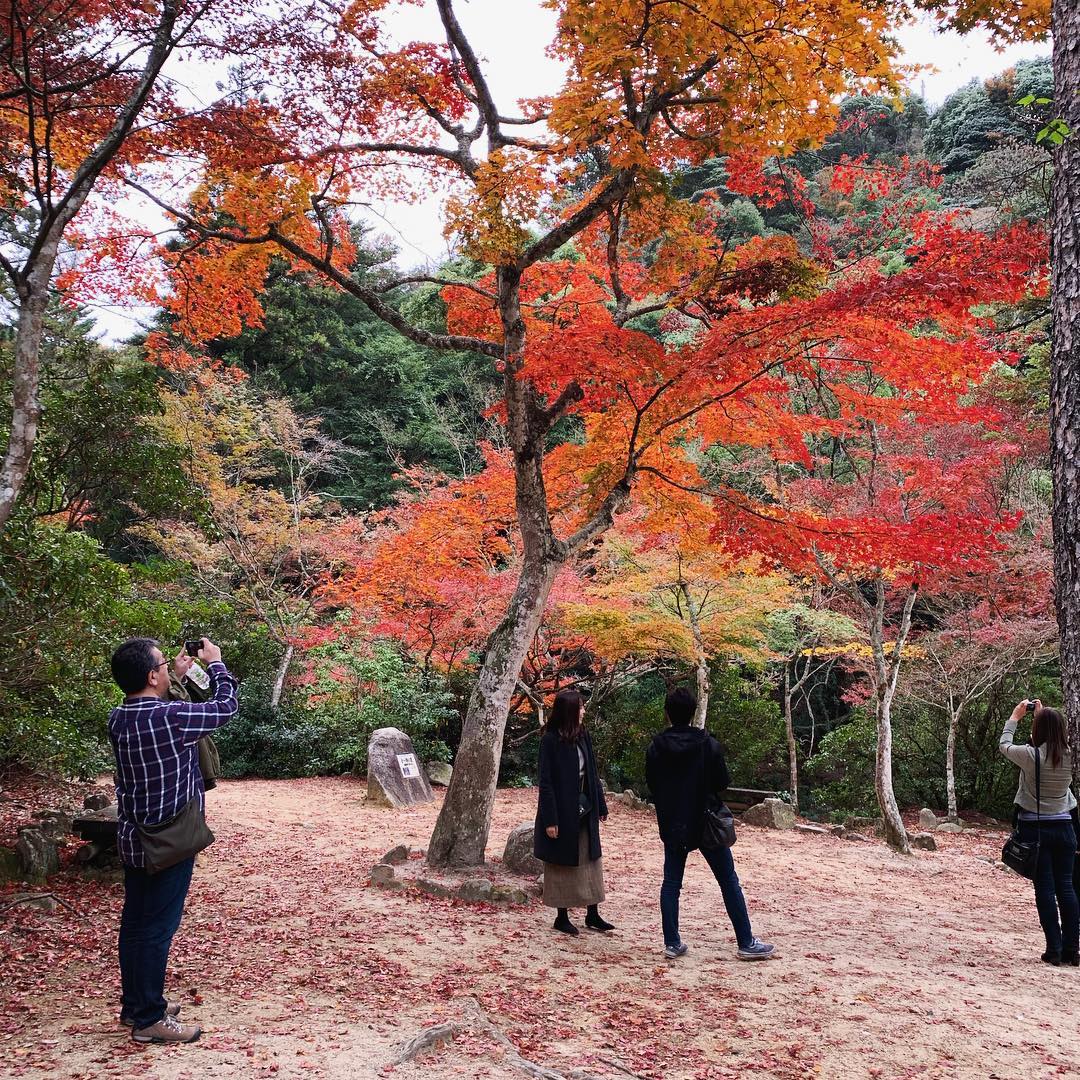 You can see why autumn is big in Japan – Acers in their full autumnal glory on Miyajima Island – this one was particularly special #japan #miyajima #acer #trees #autumn #autumncolours #autumnleaves