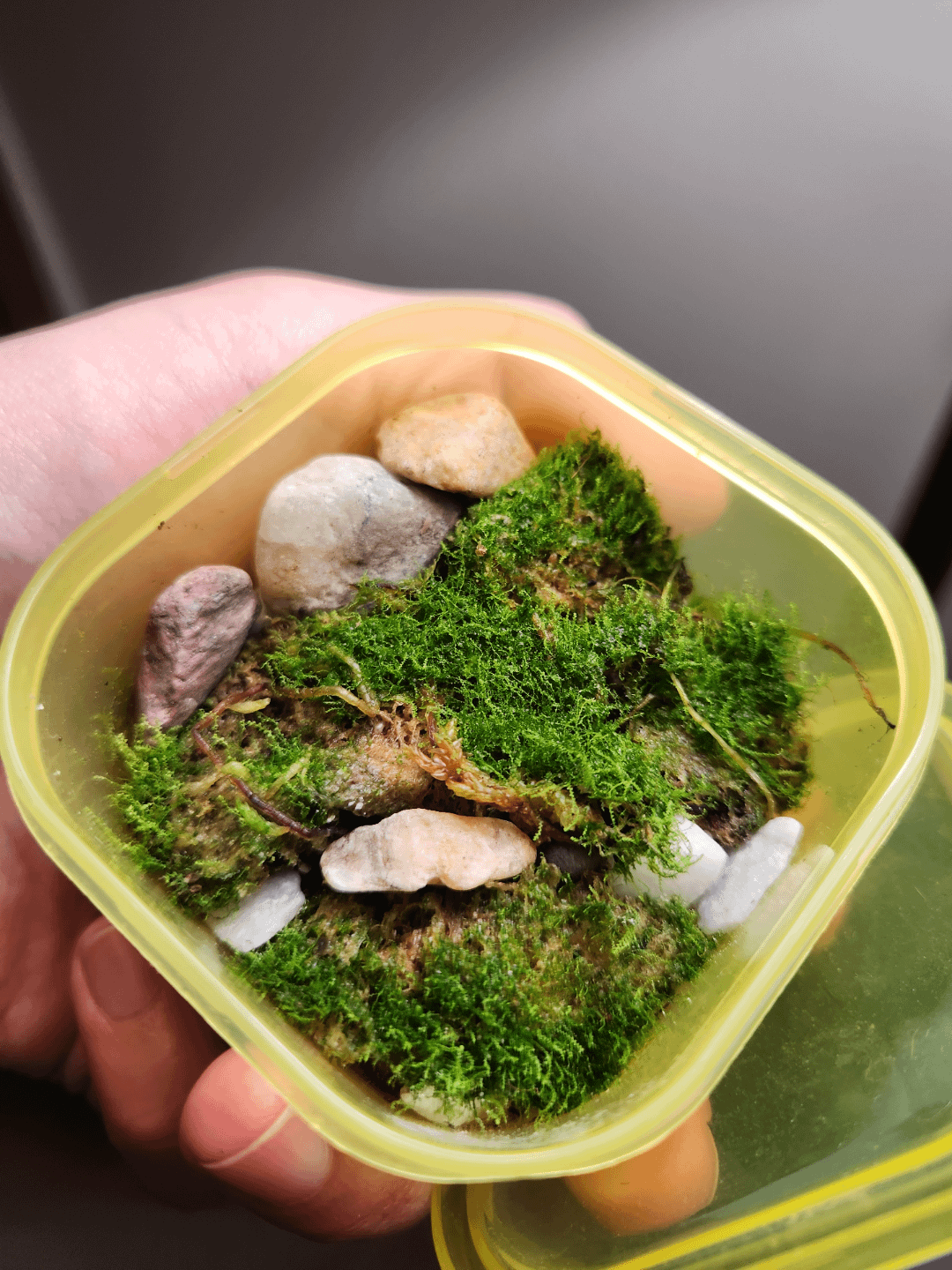 I know it’s not anything fancy, but this small moss terrarium gives me much joy. 🙂 Also, my roommate hasn’t noticed this missing container in over 2 years, so I think I’m good.