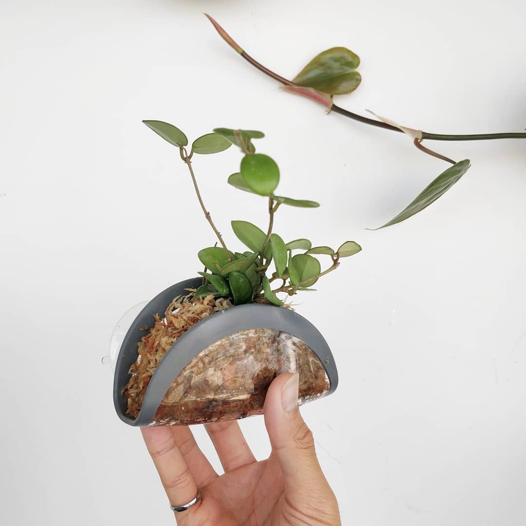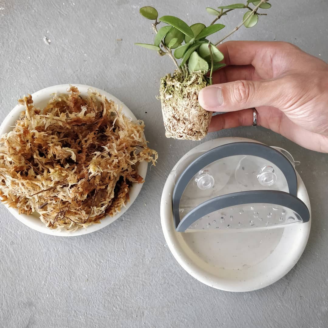2️⃣ When I picked up this cute little Hoya mathilde from @crystalstarnursery, the guy said these seem to grow better in pure sphagnum moss. This got me to consider mounting it. I had been buying lots of home-type stuff for my recent move and I had my eye on these sink-mounted sponge holders – now I had an excuse to buy another one!