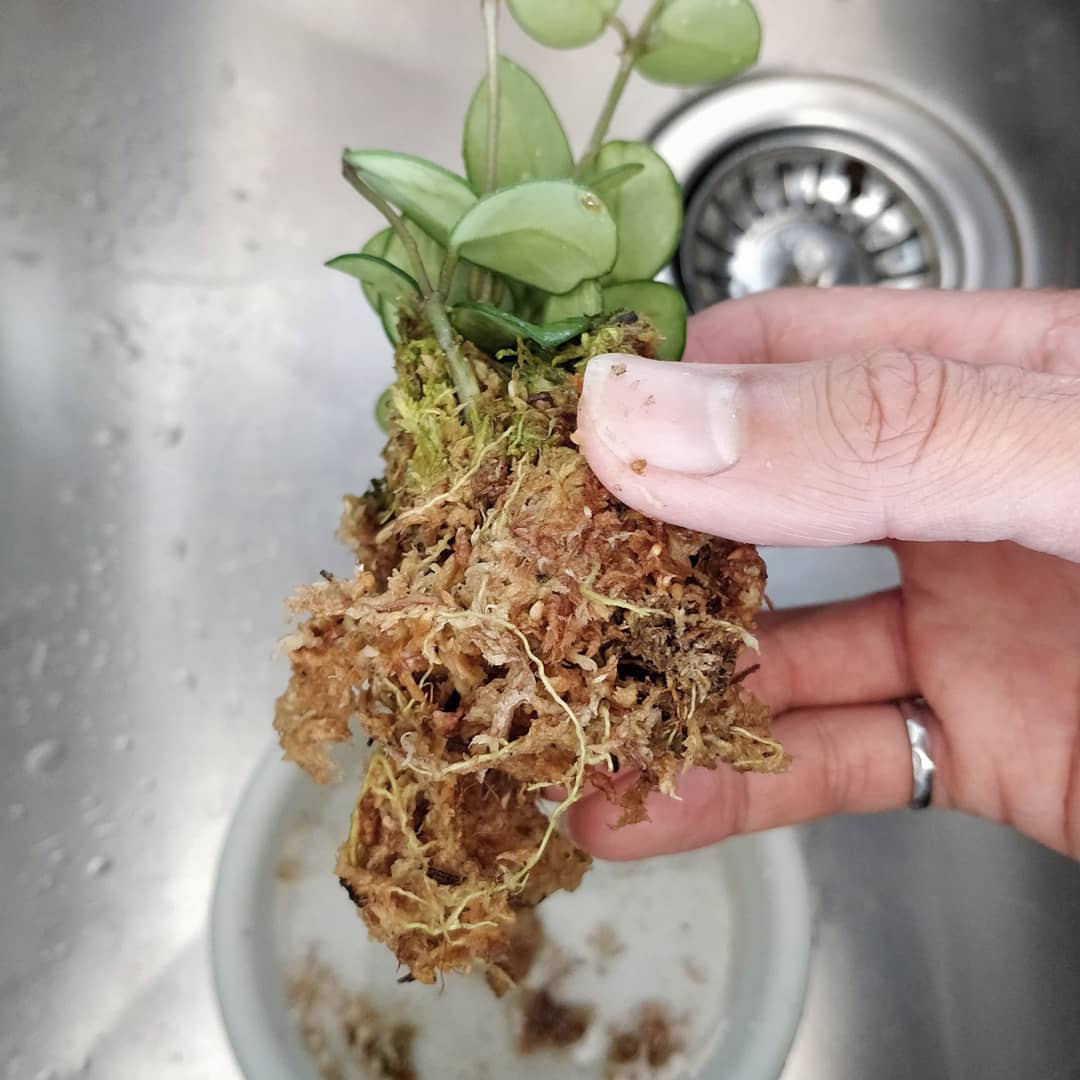 6️⃣ All done! The reason sphagnum moss is used for mounting and kokedama is because it can function as a planting medium (wet/dry cycle) while keeping itself held together (as opposed to regular soil, which is loose and would crumble apart unless contained). Thanks to @houseplantgal for lending me your sink!