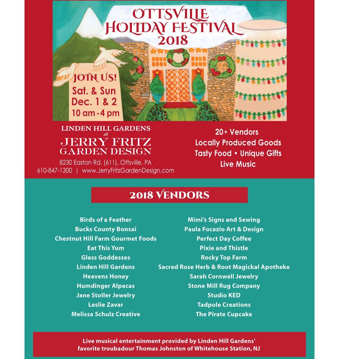 #ottsville #ottsvilleholidayfestival #lindenhillgardens #jerryfritzgardendesign #holidayfestival #weekendplans #gardendesign #gardenlovers #holidaylovers #buckscounty #buckscountychristmas #pennsylvania #pennsylvaniachristmas #gardencrafts #gardening #gardeners #artisancrafts #philadelphia #newark #easton #gardeninspiration