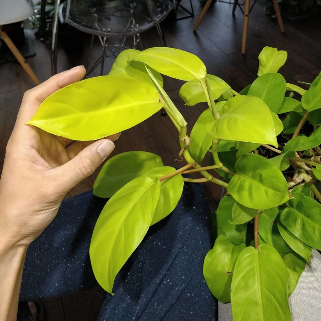 #philodendronfriday my Philodendron lemon-lime is looking super vibrant against the grey clouds today – hand included for color saturation comparison. 2️⃣ New leaves to come!