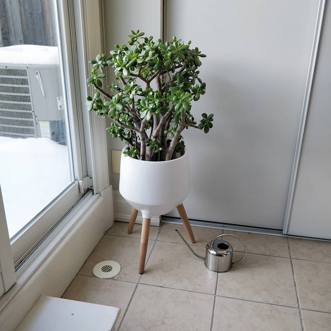 Thanks again to @style_in_form for the lovely planters (unboxing in stories). This one has been given to my in-laws jade plant, which I’m proud to say has been pest-free for a year. #tbt Four and a half years ago, I bought it from @valleyviewgardens as a birthday gift to my father-in-law – it just barely fit in the back of my old car. Several months later, it had developed a mealy bug infestation. Every few months, I would meticulously kill them with alcohol on cotton swabs. In the third year, I decided to up the ante – hard pruning and letting the plant be outside during the fall months. I speculated that harsher temperatures would discourage the mealy bugs from re-spawning. Now, as I continue to regularly inspect the plant, I can confidently say that the infestation is no more!