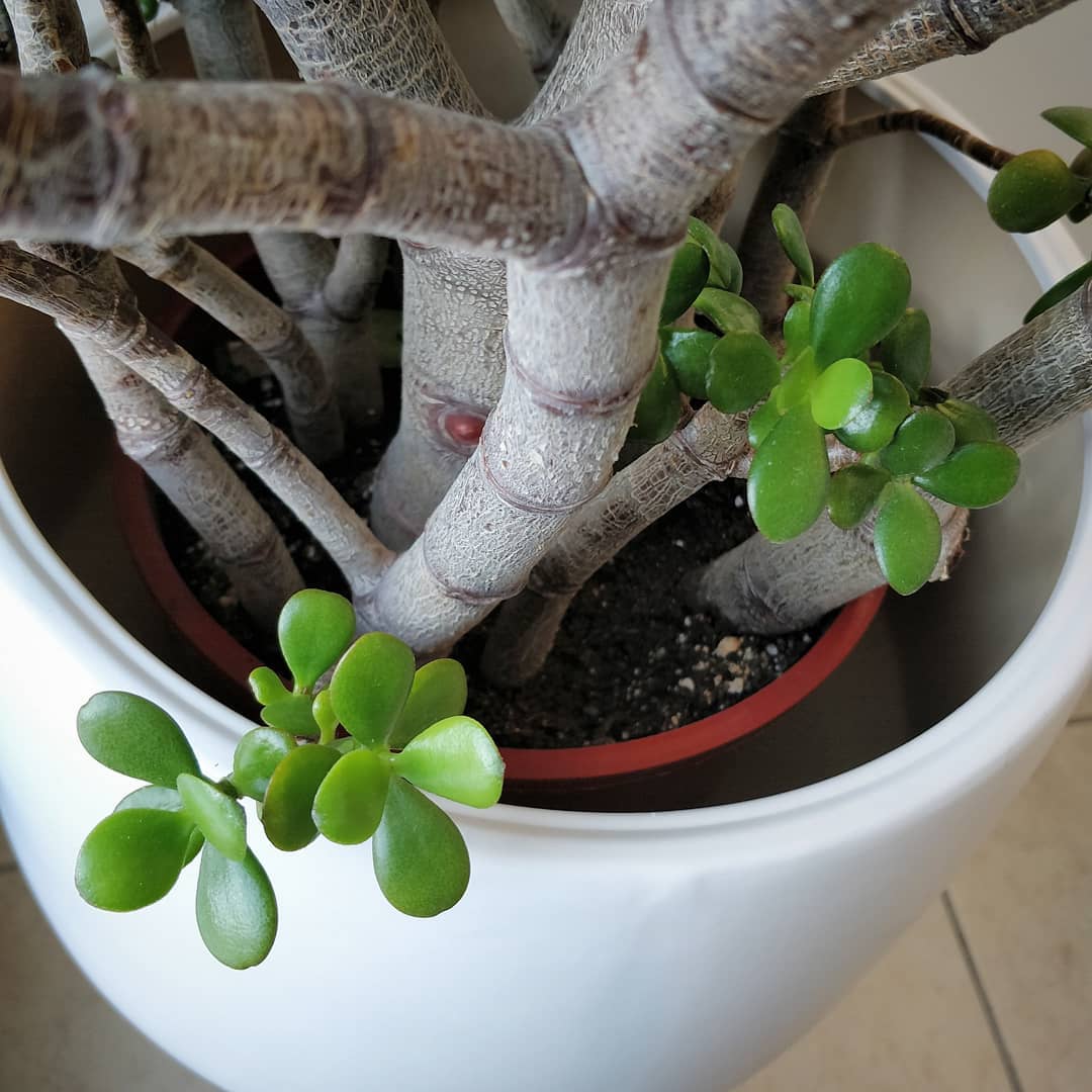 3️⃣ Ive kept it in the plastic nursery pot for ease of “costume” changes. I recall doing just one major repotting in the last 4.5 years – Jades are fine with nutrient poor soil and a larger volume of soil will have plenty of nutrients anyway.