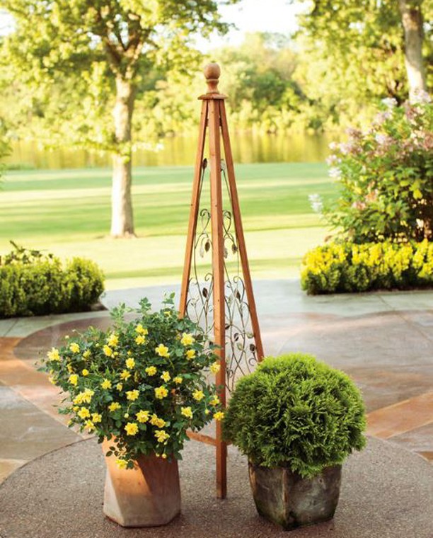 Loving this view of (L) Oso Easy Lemon Zest landscape rose. Will give your porch or garden blooms all season, plus is low-maintenance and has excellent disease-resistance. Flowering shrubs make for great container plants.