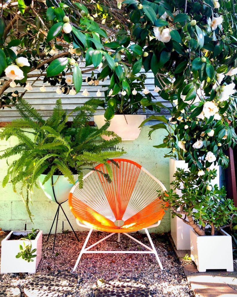 Happy šŖ Day! Carved out this cozy spot in the LA garden where a fluffy #Bostonfern and flowering camellia frame a perch by local artisan @chairacapulcoādone in custom colors. Plus jade succulents for structure šµššæ #crassulaovata #camelliasasanqua #nephrolepisexaltata #hygge #gardenstyle #thehorticult#la