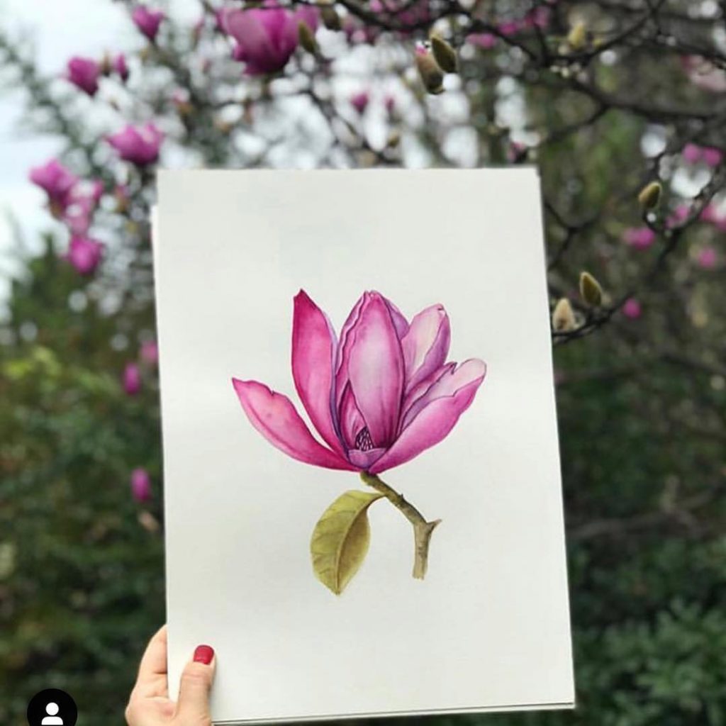 RUN to the @sfbotanicalgarden to see The Magnolias in peak bloom right now. Gorgeous art by @olgaakbarova.art – check out her other botanical illustrations on her IG page.