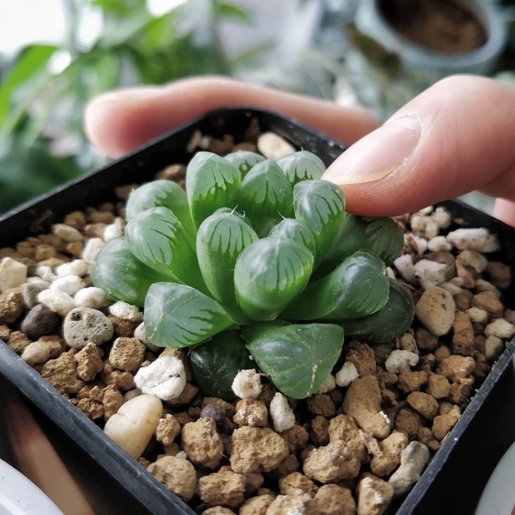 Really loving these little window Haworthias – this one was a gift from @davesairplantcorner – I’ve got this one right at the window. Every so often, I’ll feel the plant – when it’s somewhat squishy, then I’ll give it a thorough watering. It’s currently planted in cactus soil with a nice top dressing (the brownish rocks on top)