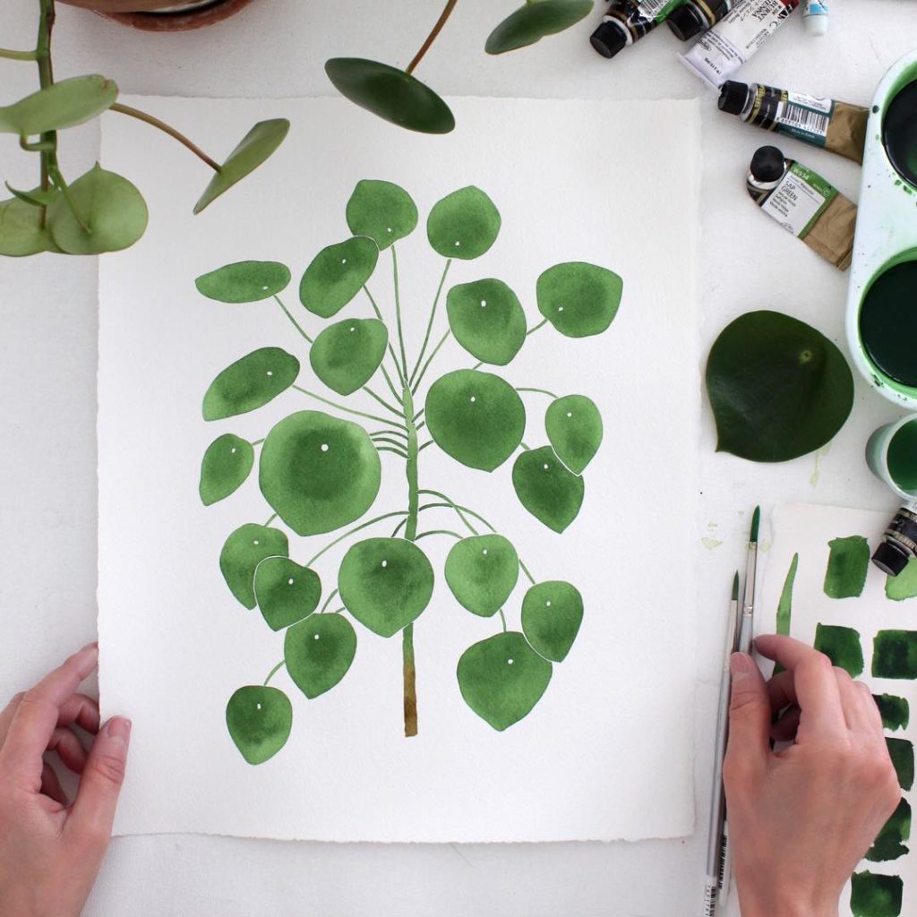 @livingpattern: Just finished painting the Pilea peperomioides I sketched out last week. They ar…