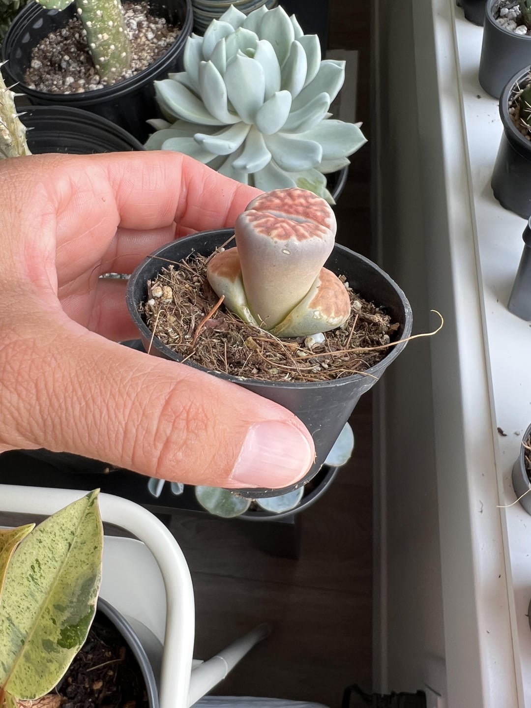 Pictured are two lithops with old leaves receding. Plant above gravel or below?