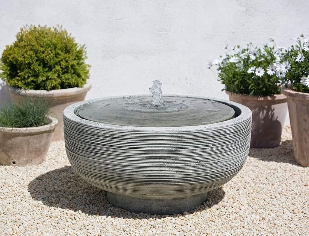 See fountain ideas by clicking the link in our bio under “Shop Garden Products + Bookstore” Pictured is the Campania International FT-102-AS Girona Fountain in Alpine Stone.