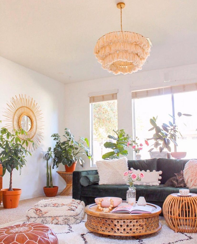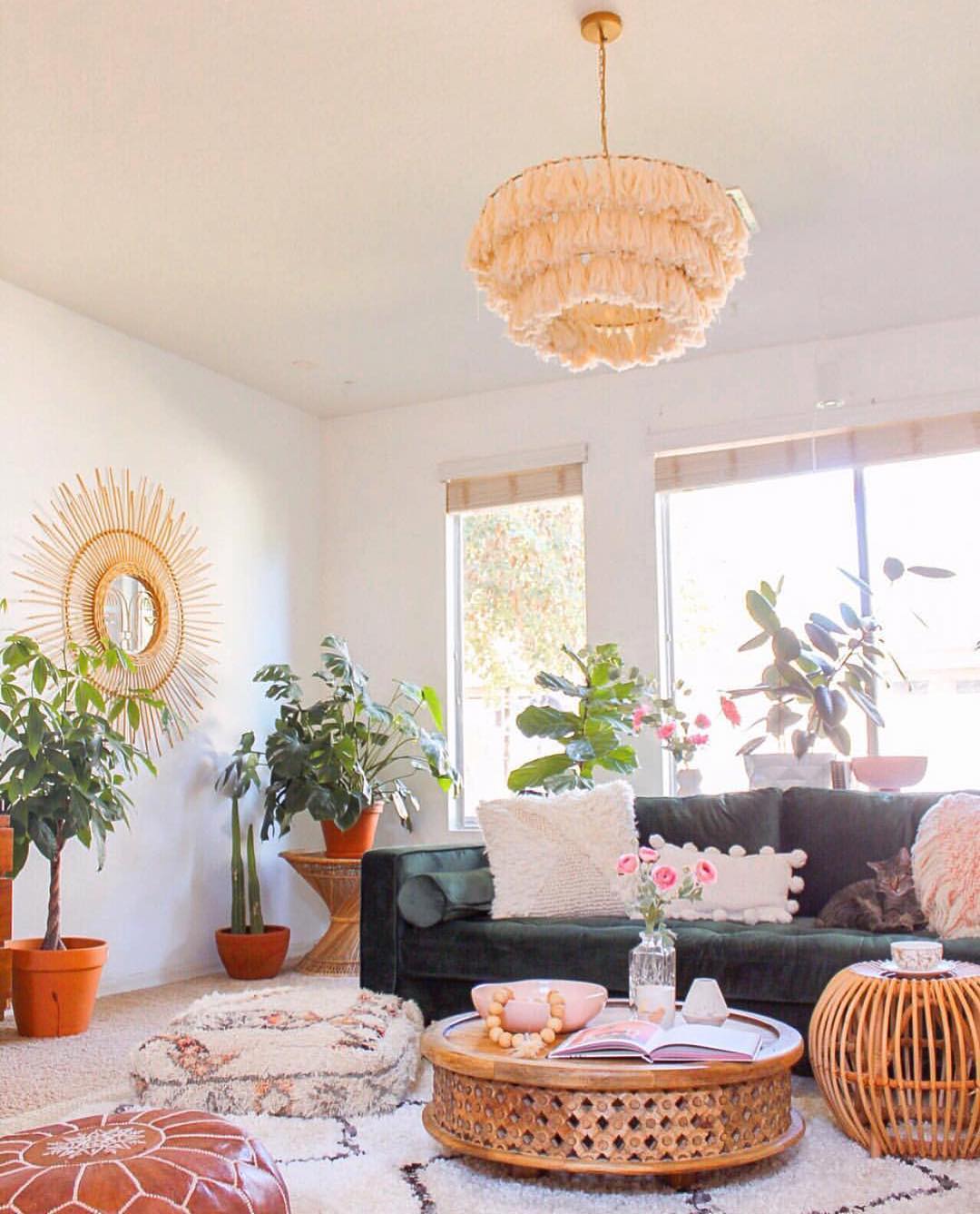 @dreaming_of_decor has us dreaming of napping on that sofa!! Featuring our Emuna mirror and Fela tassel chandelier. All kinds of boho beautiful!
