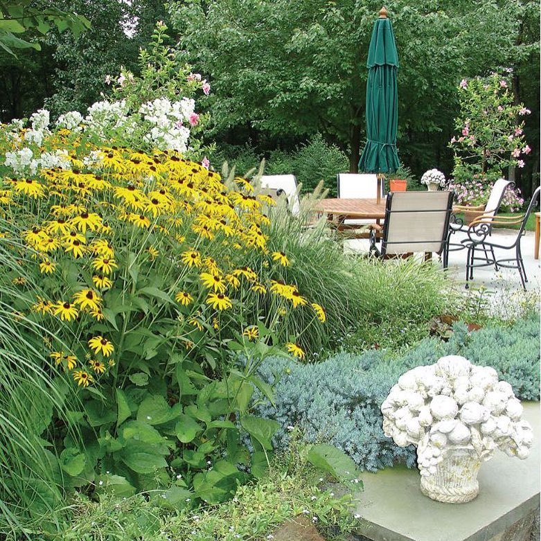 1. When planning your garden, write down what your goal is. Picture 2: The owners of this terrace garden knew their goal: lots of color and a place to enjoy their classic statuary. Here they sit among summer flowers such as dwarf black-eyed Susan (Rudbeckia fulgida ‘Goldstrum’), white phlox (Phlox paniculata ‘David’), and carefully placed artful accents.