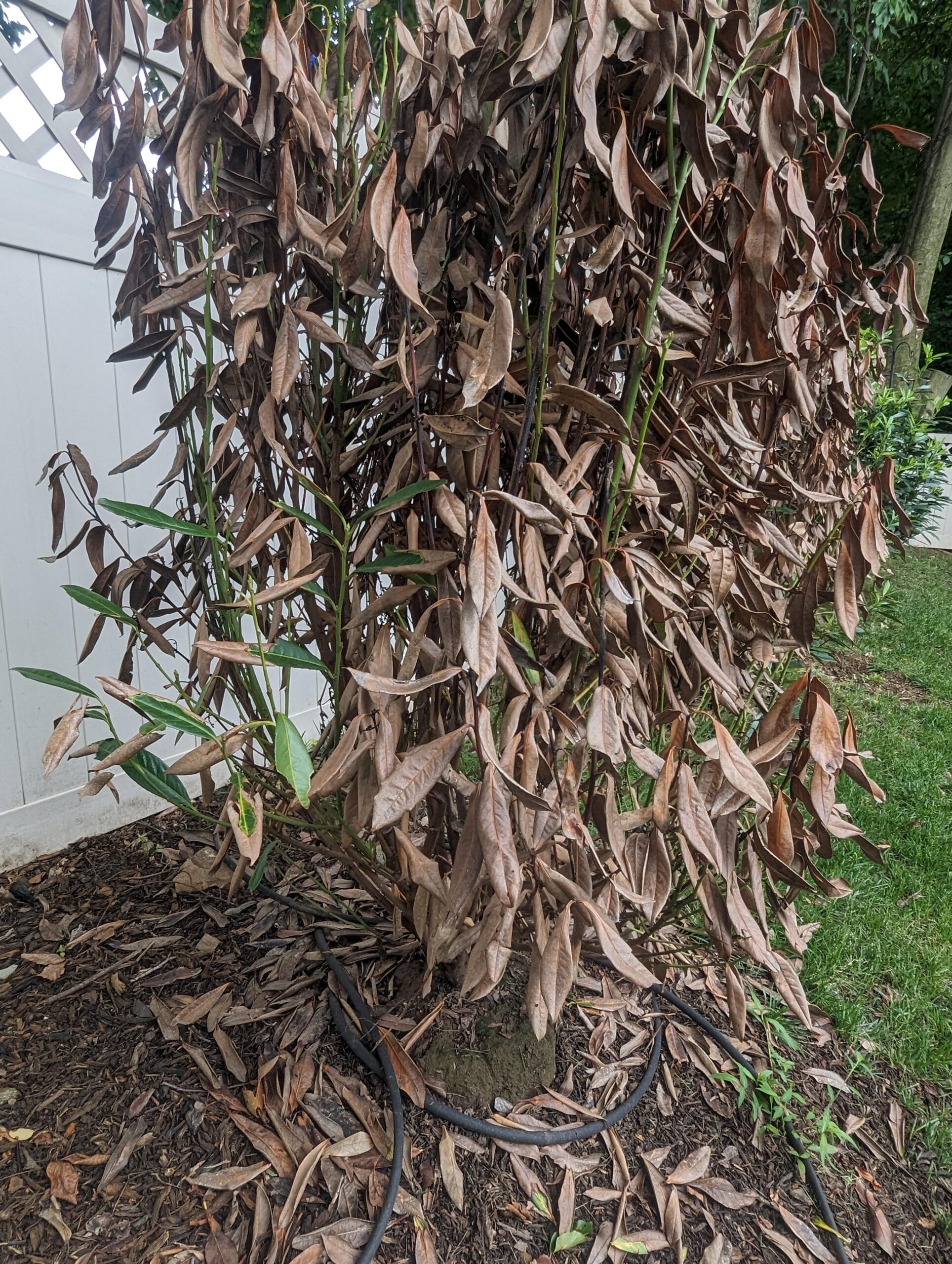 Waited to plant too long from bucket. Didn’t dig deep/wide enough. Was in a tough spot. Threw it in and hoping to grab hold. All turned brown. Just started getting some new shoots but is it worth keeping? Will this fill out next spring?