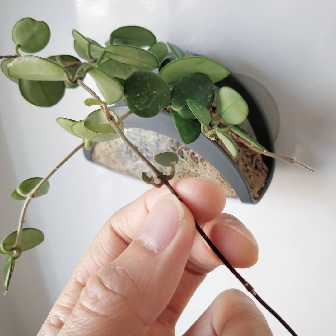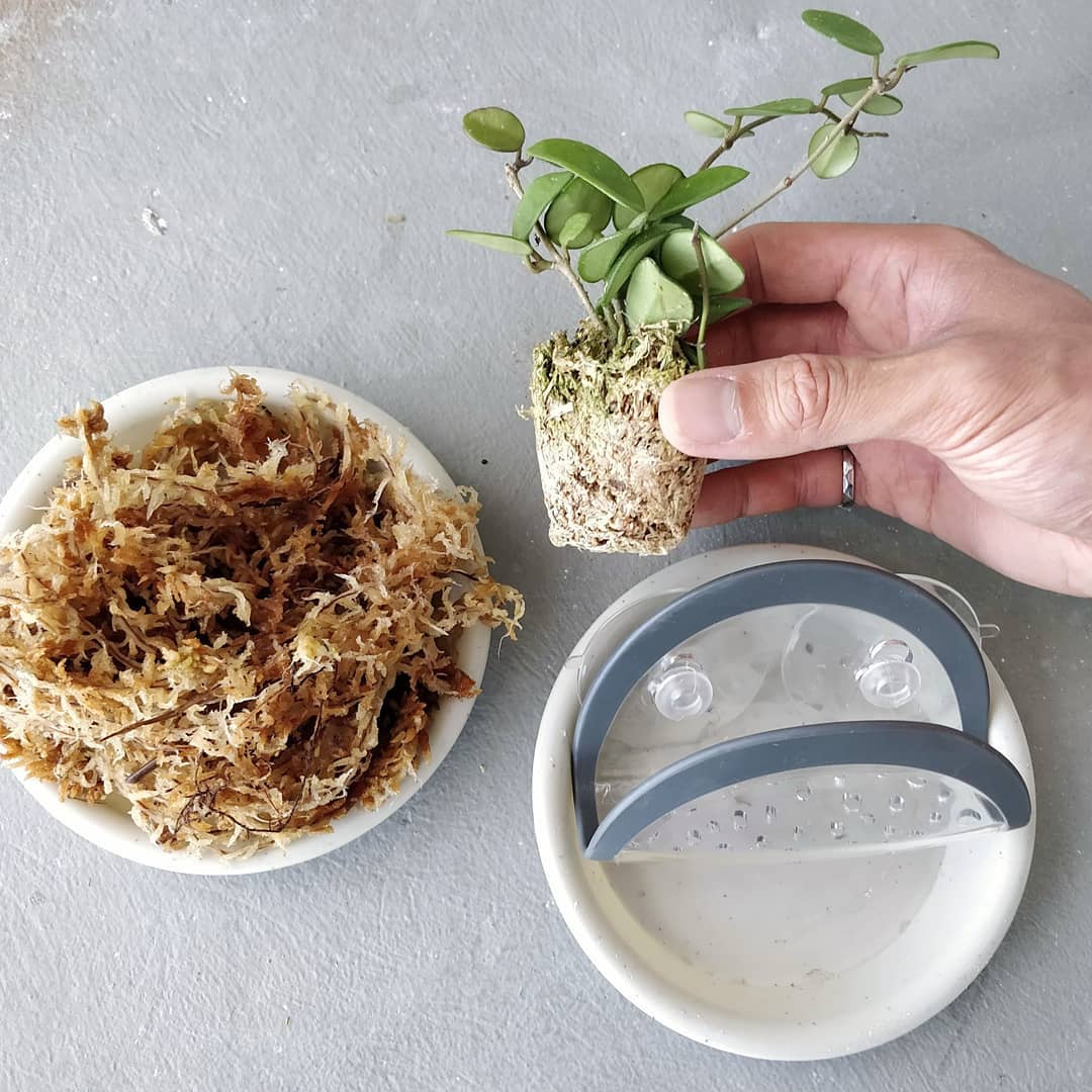 3️⃣ #tbt September 2018 when I first planted the Hoya into the taco shell (a suction cup sponge holder). Planting medium is sphagnum moss.