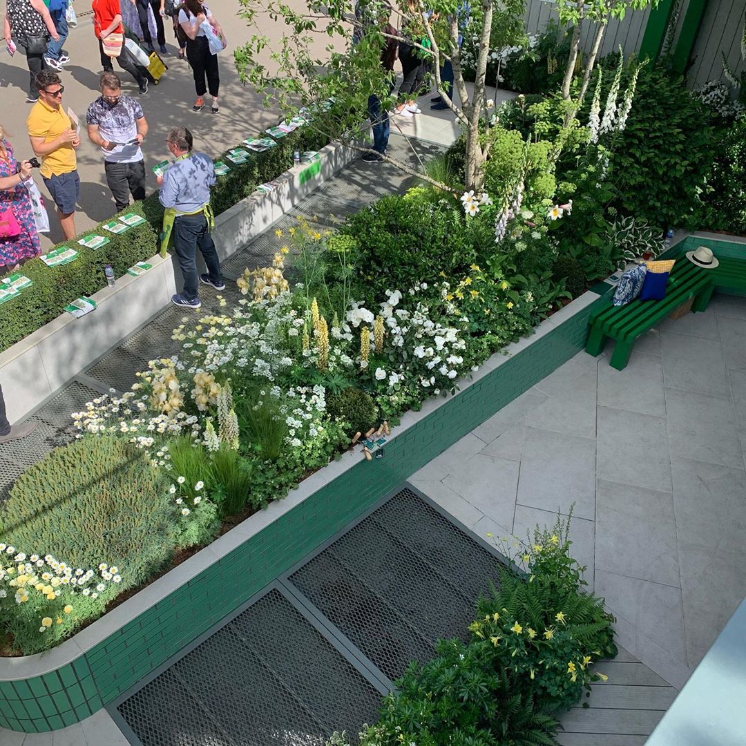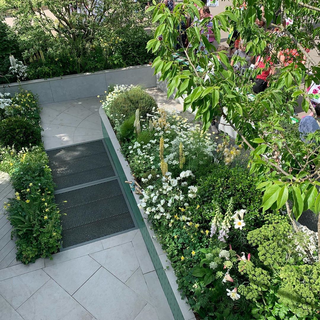 I am a firm believer in creating different levels in a garden or in this case a show garden. They add interest and drama. The view down onto the planting from the upper deck on the @greenfingerscharity garden gives the space a whole new perspective where plants can be appreciated as a tapestry #gardendesign #showgarden #birdseyeview