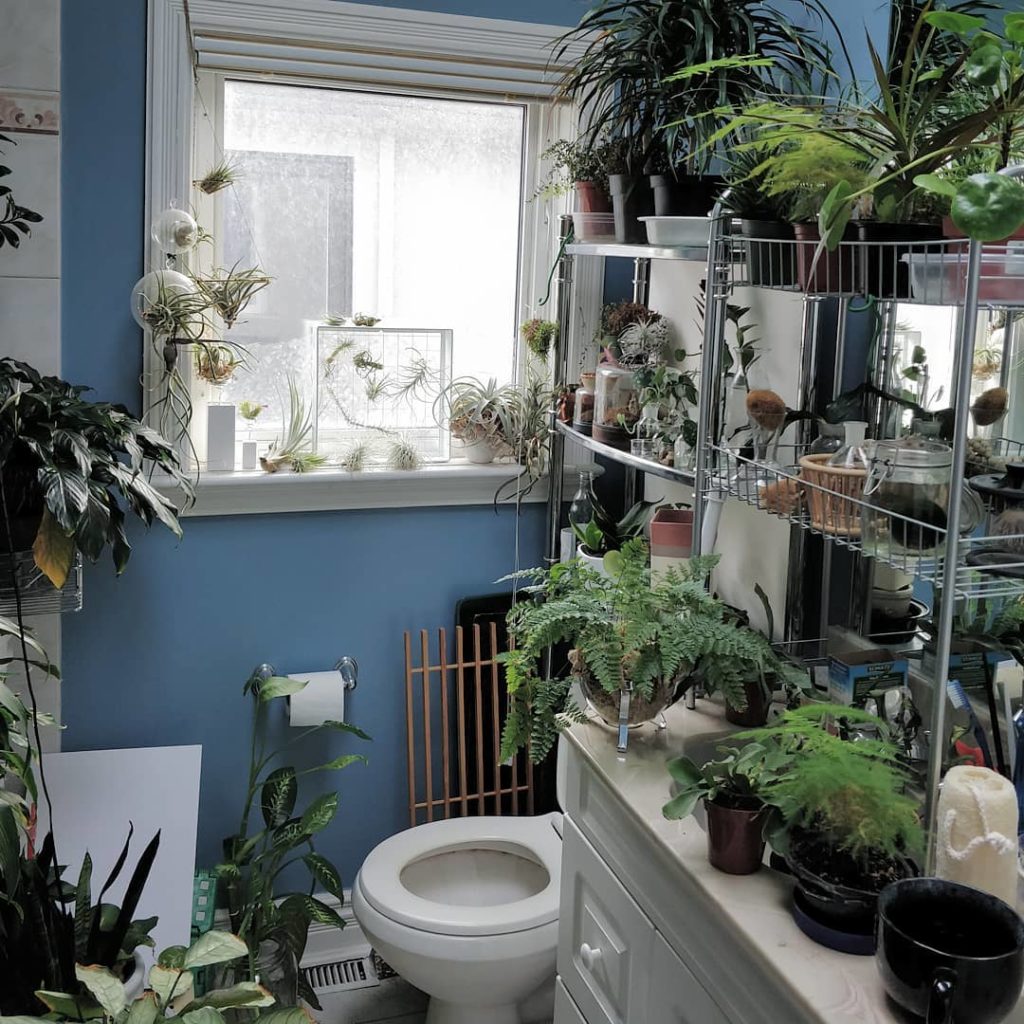 Over-the-toilet and over-the-sink shelving = MOAR PLANTS! Actually, they’re looking more crowded than usual because I had to make room for a time lapse: 📷 2) trying to capture both a zz plant stem growing and a peace lily blooming. Have you seen a Monstera deliciosa leaf unfurling? Check out the time lapse by @sacredelements – it’s 👌🌿
