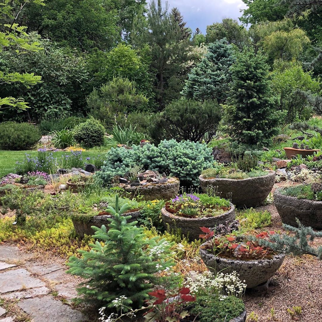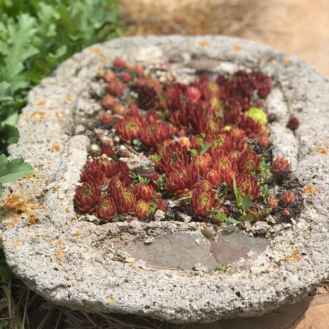 Do try this at home. Hypertufa containers seen at the Jan and Richard Devore garden in #fortcollins Lots of how-to videos online show you how to construct. 2nd picture is a grouping of containers.