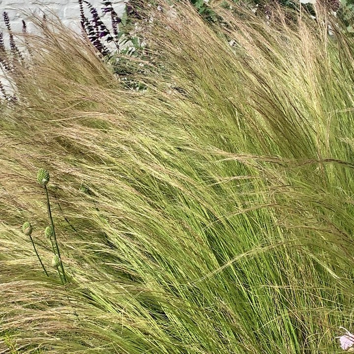 Stipa tenuissima waving in the breeze: sometimes gently, sometimes manically, always elegantly! This year the cat has refrained from using it as a cushion which is kind of her, so it’s doing what it does best, wafting enticingly in the merest breeze unencumbered by a furry bottom attached to the front end of a pretty angry kitty #Stipa #grasses #gardendesign #gardens #gardening #loveplants #mumsnewgarden #plantsofinstagram