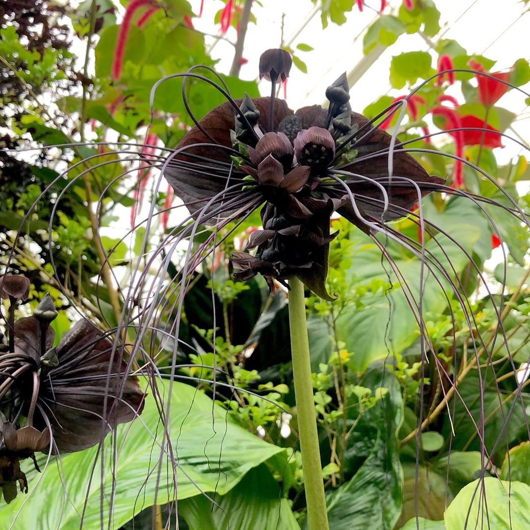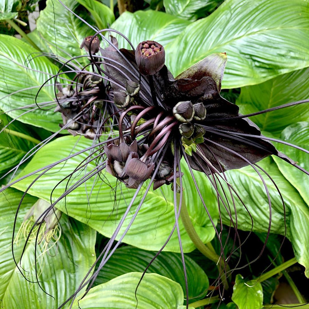 In deep 🖤🦇🖤 The bat flowers are in full flight in the Bay Area! This wild whiskered beauty is native to Southeast Asia, where it adds drama to the understory of tropical forests. With the right conditions you can grow your own in part/dappled sun and enjoy ebony blooms from summer to fall. #taccachantrieri #thehorticult #sf