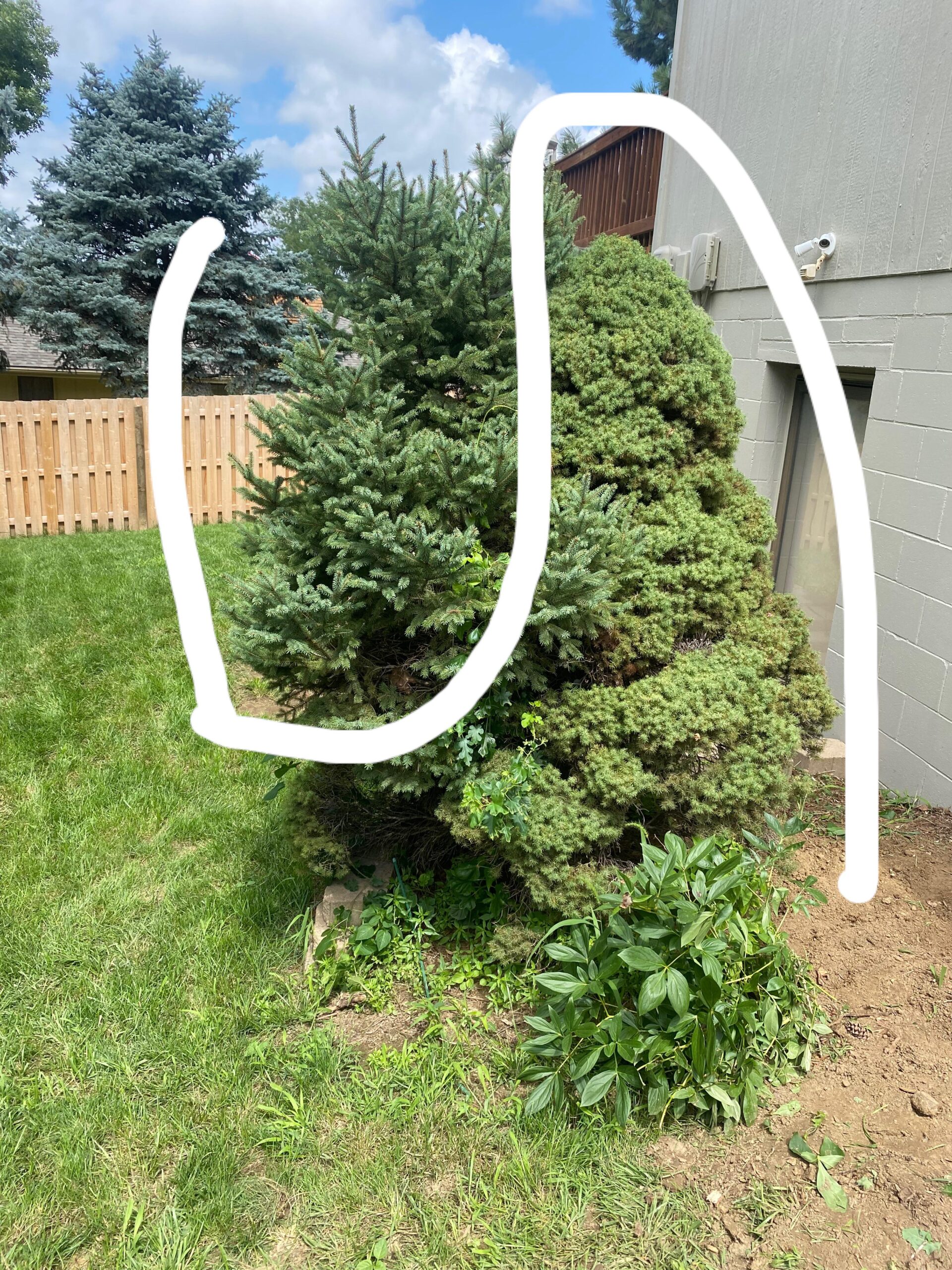 This is called “[reversion](https://www.canr.msu.edu/news/understanding_tree_reversions)”. The plant is a cultivar of a wild plant that was selected because of its unusual growth, in this case compact leaves. The larger branches growing out have reverted back to the original growth pattern of the wild variant. So more of a de-mutation in a way. The reverted branch will grow much faster than the cultivar branches but you can just can just cut away the reverted branch and it should be fine.