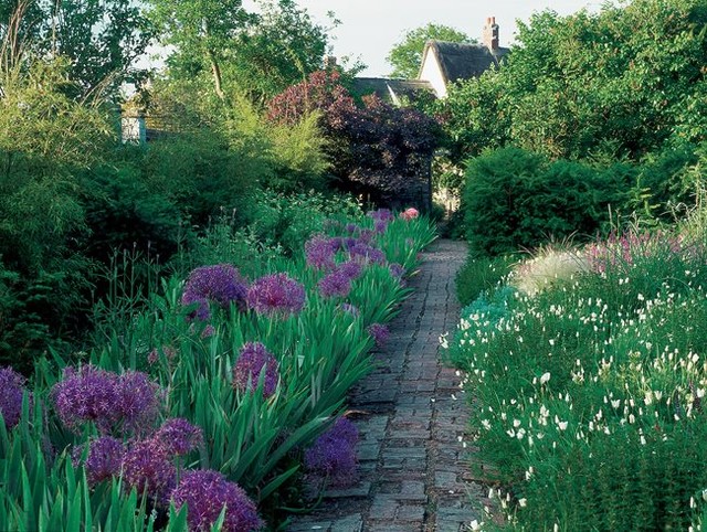 Traditional double borders get a relaxed treatment with perennials pushing through purple alliums and white California poppies. Photo by Nicola Browne. Love gardens? Link in bio for abundant reading + garden envy.