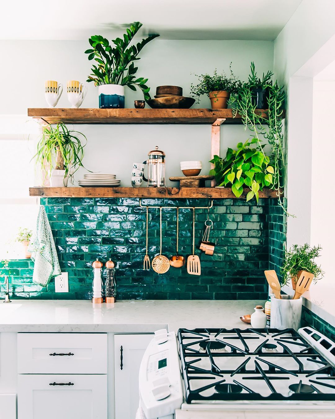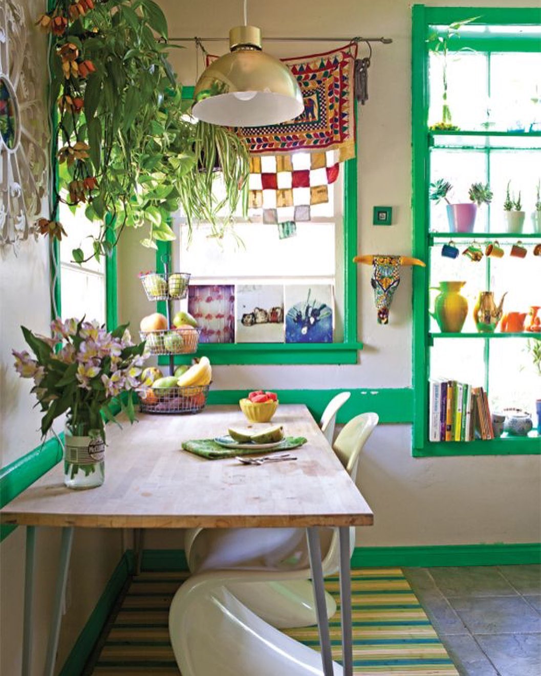 (Photos: The green kitchen in our #jungalowbytheriver and the kitchen from our rental #jungalow from 2011)