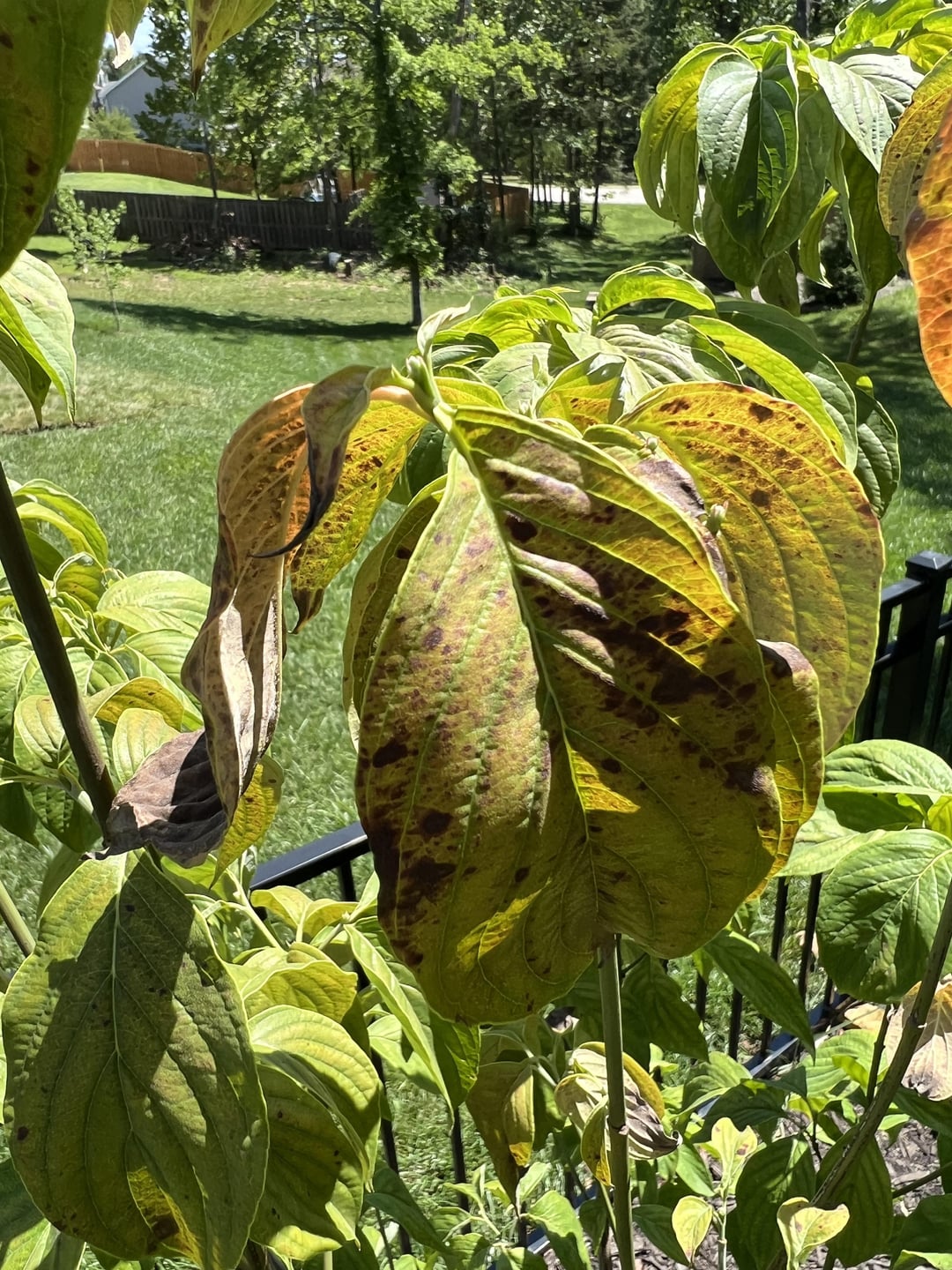 I planted a dogwood this spring and it recently started to get some browning on the top center of the tree. It’s planted high in clay soil and I also dug extra deep and added rock as a drainage basin, and put in a non clay soil so it’s not sitting in super wet soil and getting root rot. We had a big drought until just a few days ago when got a lot of rain. I’ve been watering it all summer every couple of days when the soil around it was feeling a bit dry. As of recently it started to get the browning of leaves, I’m thinking maybe it’s a fungus? What can I do now and or into the fall/next spring to help it out?