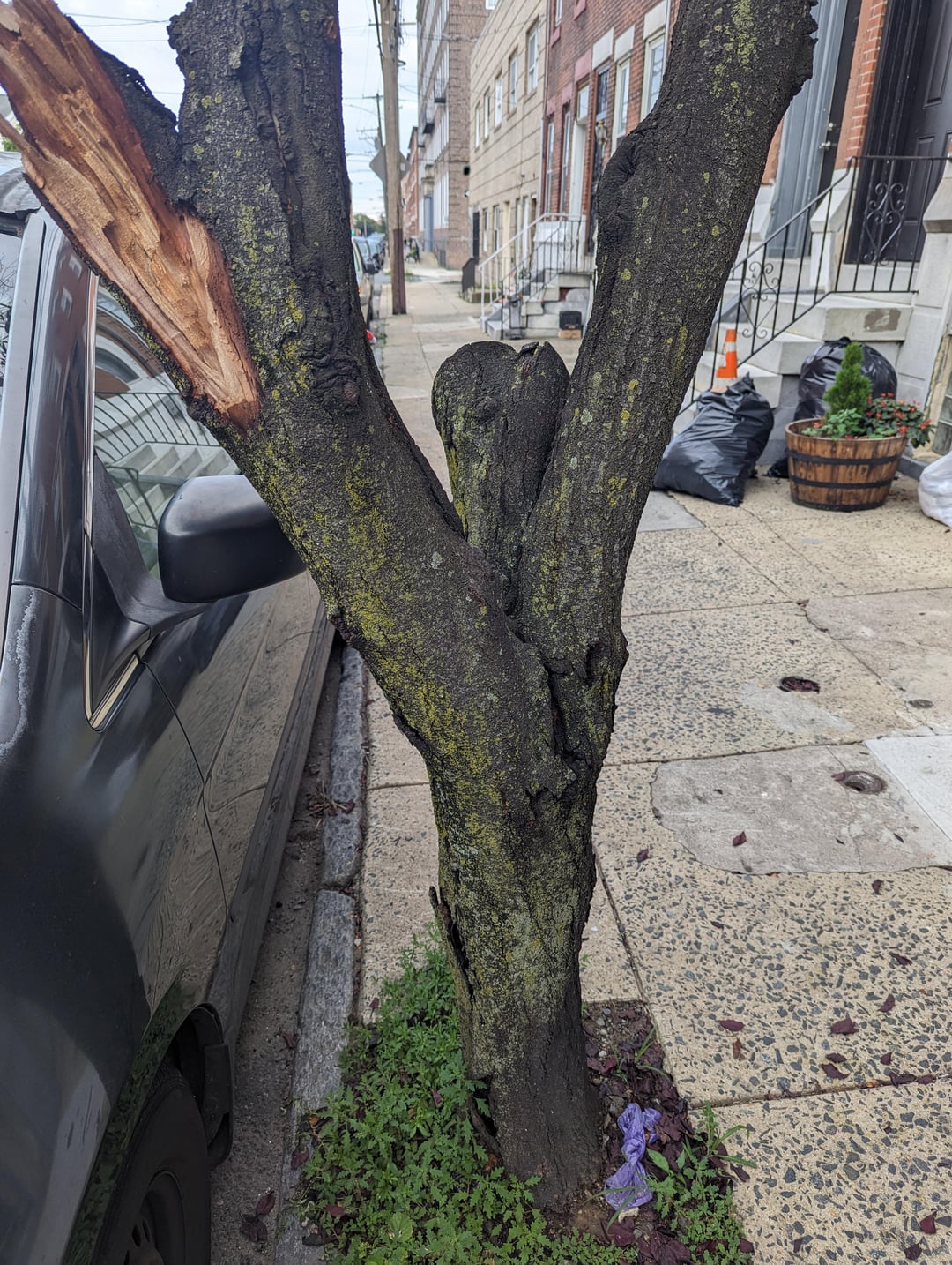 Just moved in and this tree obviously has some dead limbs and is shedding leaves quickly. I suspect the combination of limbs being knocked off by vehicles and poluted earth from the city has sealed its fate, but what does reddit think?