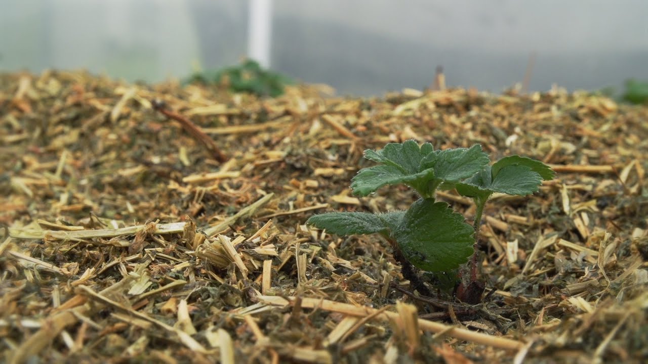 Dig a trench where you’re going to plant your strawberries, place animal manure (chicken poo, sheep pellets, horse or cow poo) into the trench and then mound the soil over the manure in the trench. It’s not until the plant is several weeks old and the roots of the plant reach down to the animal manure, that they get a nitrogen burst, exactly when leaf growth needs a boost.