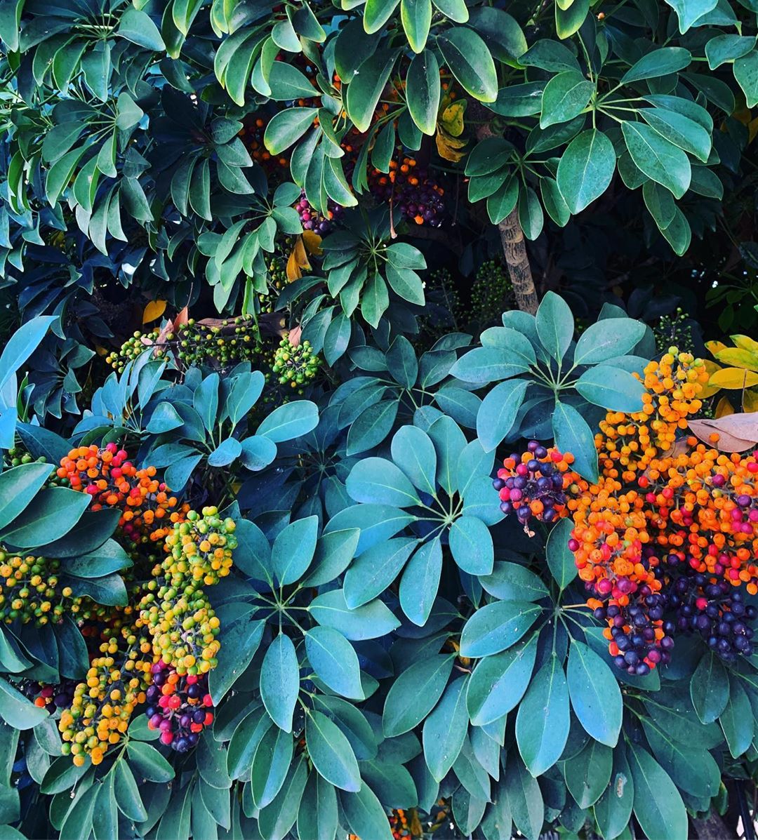 I walked the long way from our local coffee spot to get home, and came across this magnificence reminding me, yet again, that taking the longer or less visited path can yield surprising, exciting and unexpected results. Changing up small things in a routine can help free up creativity and spark new ideas. It’s good to remember to step out of our comfort zones, switch up routines and go explore! Also I had no idea that the schefflera had such incredible rainbow berries!! #jungalow #thesecolors