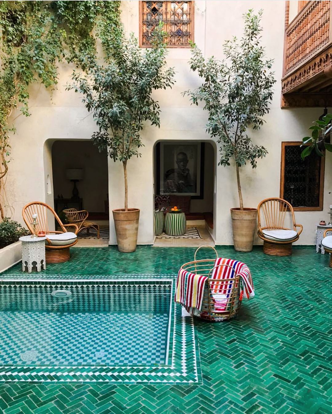 @elfennmarrakech giving us life with all this green zellige tile! 🤩❇️😍What color zellige tile would you use for an outdoor courtyard? #jungalow #thejungalowjungalowJustina Blakeney Comments are closed.
