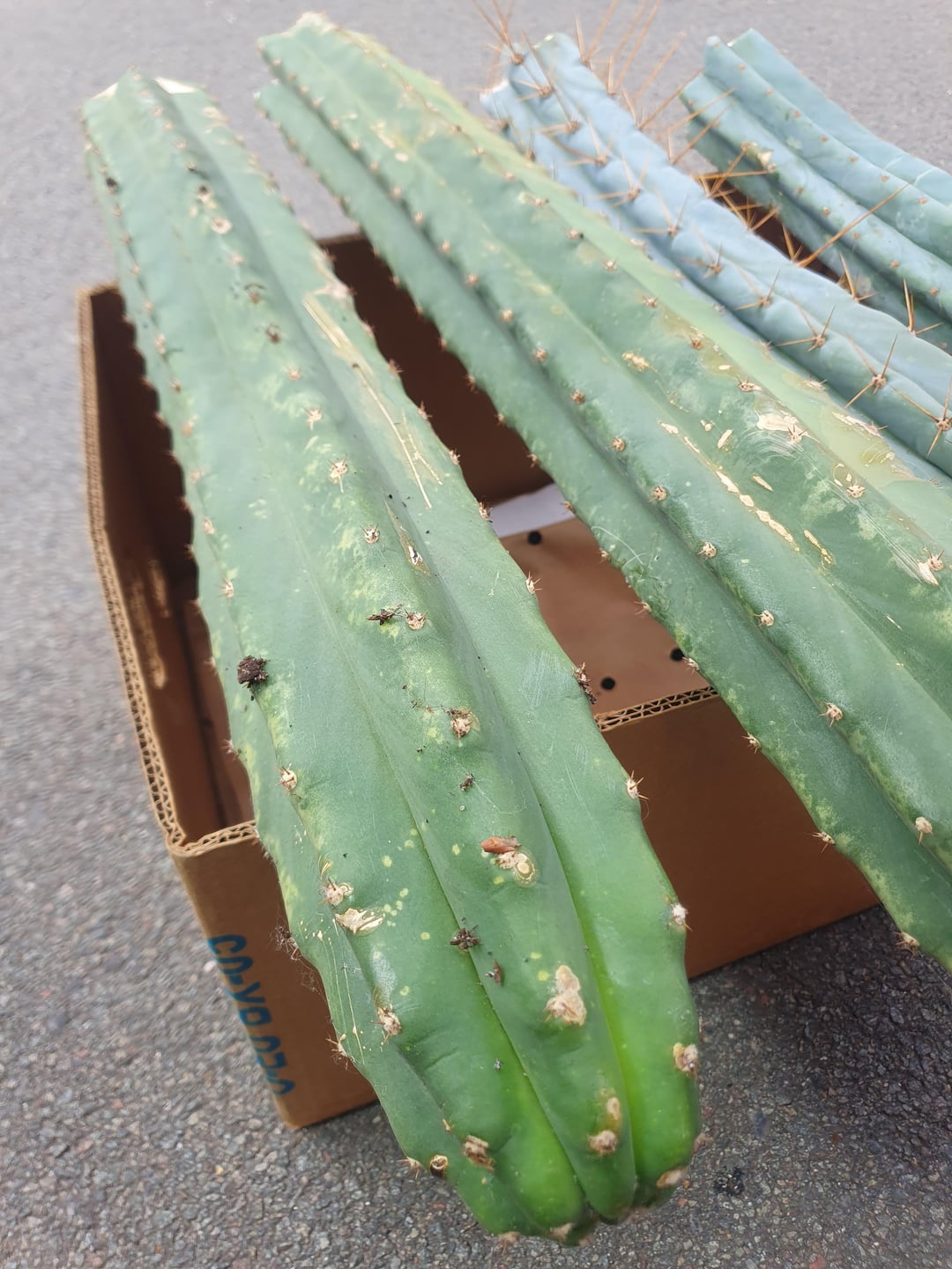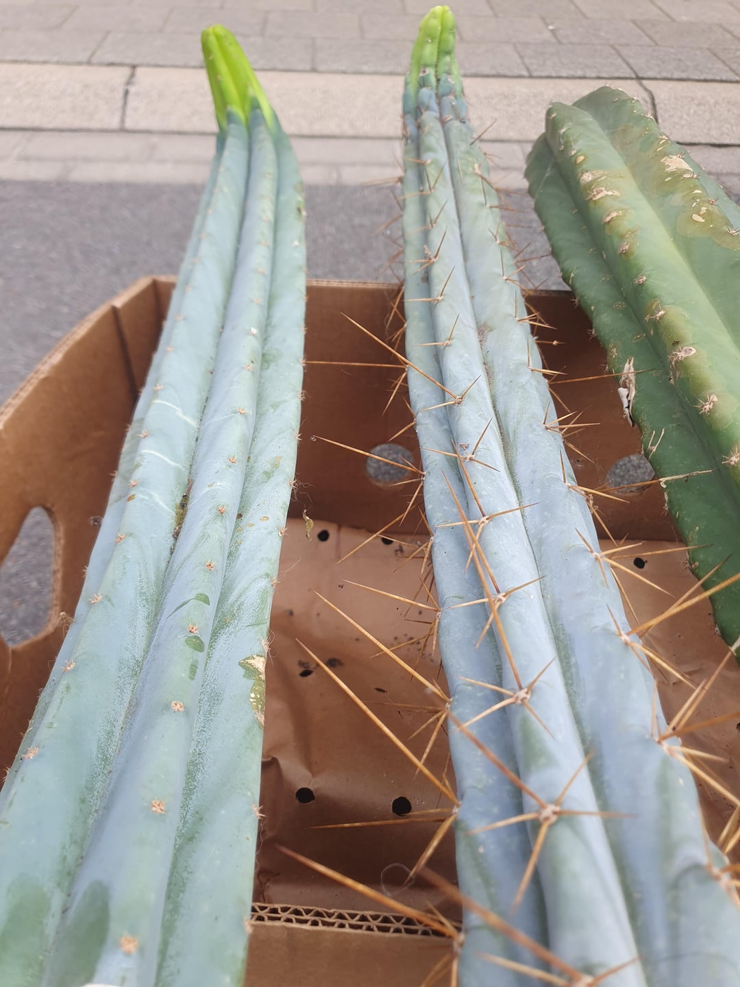 The long spined blue one is a myrtillo I believe. Are the others what we’re after? If so, an ID please? by fresh-life cactussan pedro cactus 13 Comments lipdevourer 2 years ago I don’t think that’s a myrtillo, looks like Bridgessii. Pachanois, Bridgessii, and and short spine Peruvianus . Microbe-Magic 2 years ago Yes you did. They are all trichos 👍the two fatter green ones appear to be PC Worldly_Ice5526 2 years ago Whoever gave you those is a legend! This post goes to him Particular-Fox-2925 2 years ago I’d say so! Great score Asleep-Mark6634 2 years ago Score all around! Weazeldogg1 2 years ago Sweeeet! Feisty_Factor_2694 2 years ago They look like them to me! NWTL21 2 years ago Yep blue myrtillo, very common and not worth very much, I’ll give you 20$ for it! fresh-life 2 years ago So… as you might see 3 of them have kept on growing after being cut, and now their tip have grown very curved (almost 90degree angle) Could these fill up or should I cut them? Log root them? udntknwme101 2 years ago The bluer ones could be Echinopsis Bolivian Bridge Twisted Tip’s. Seen them have that very hue before. Very beautiful cacti. snaphappy2 2 years ago The long spined blue one looks like a Peru/bridge cross like oceansideO2 or something close vinmansinvested 2 years ago Sure did vinmansinvested 2 years ago The top two skinny ones I would cut them in half then chop the skinny tips off because they are becoming etiolated and will grow skinny and pointy . Write A CommentYou must be logged in to post a comment.