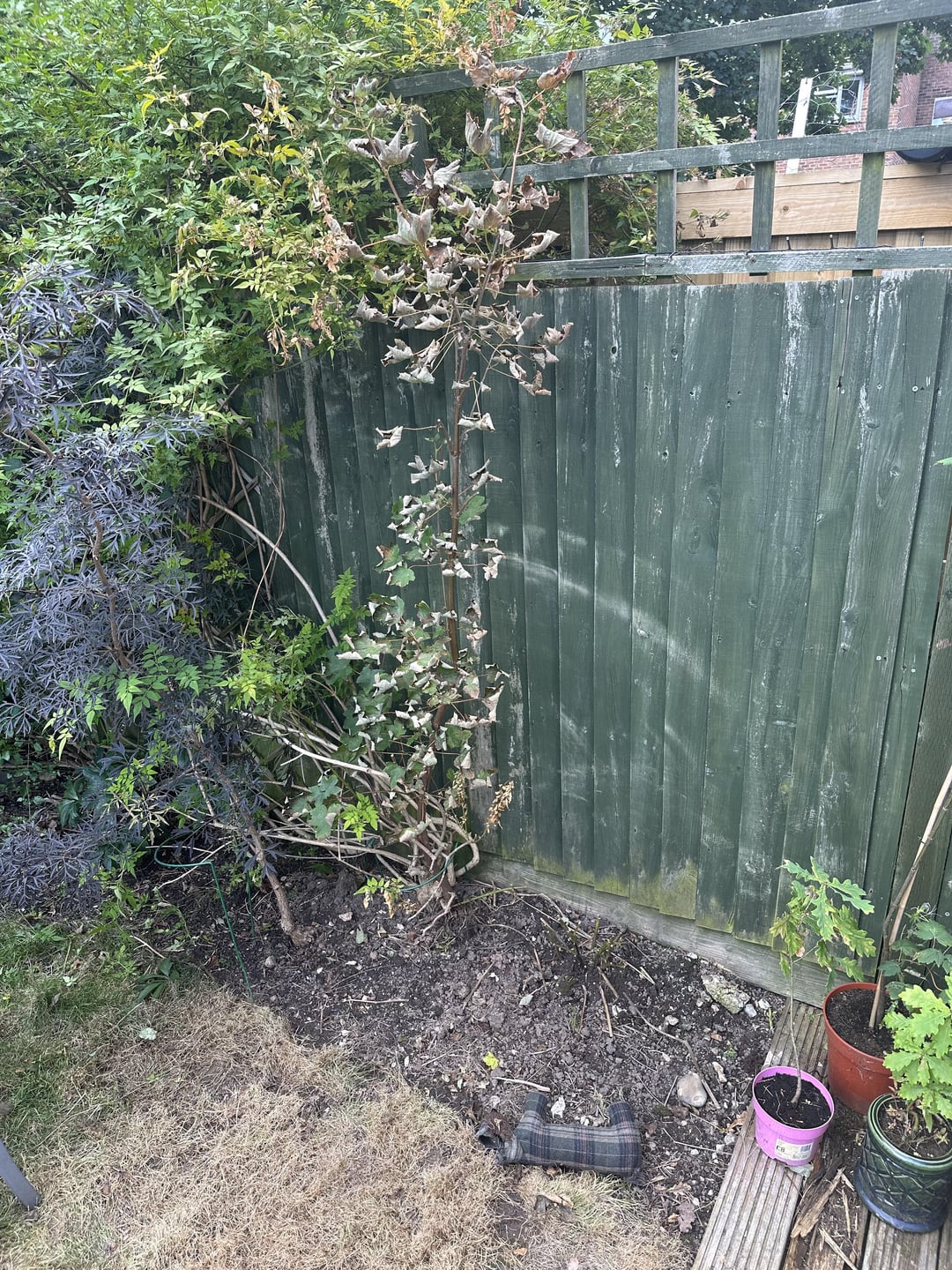 This corner however has gone yellow/brown and is dying fast, noticed across the last week. We have a dog, but he wees all over the garden and I’m certain it’s not due to him. The grass dying was one thing, but it seems to be spreading to the flower beds and now the 7ft tall semi-mature sycamore is also dying?!