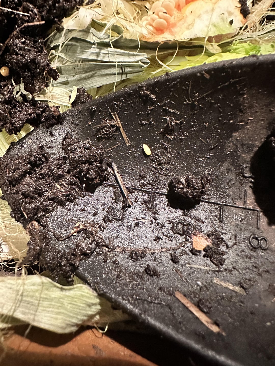 We noticed more fruit flies in the house but assumed it’s because of very ripe peaches in the kitchen we’ve had for the last few days. Today, I went to add more food scraps (no meat, no dairy, just vegetable peels and occasional apple pieces) and I found many of these… this indoor compost is very far from the kitchen, if it matters. Please tell me what I need to do! Should I dump this out?? It’s like 5mm long and it’s kind of like almond shaped white grub? Thanks in advance for your help!!