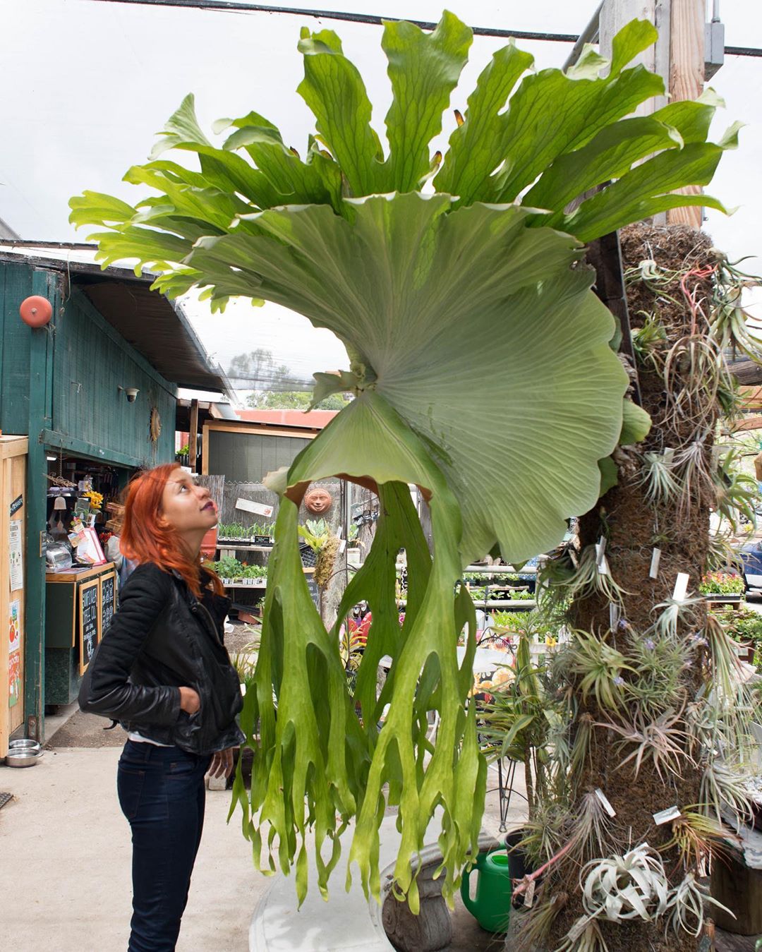 Flashback to when Chantal came face to frond with the Platycerium superbum (aka #staghornfern) at @cityfarmersnsy 👩🏽🦰🐉🐲 Imagine having this behemoth by your entryway! (Wanna mount your own staghorn or elkhorn fern? We’ve got the #DIY—just swipe up on our story.) #ferntastic #platyceriumsuperbum #thehorticult